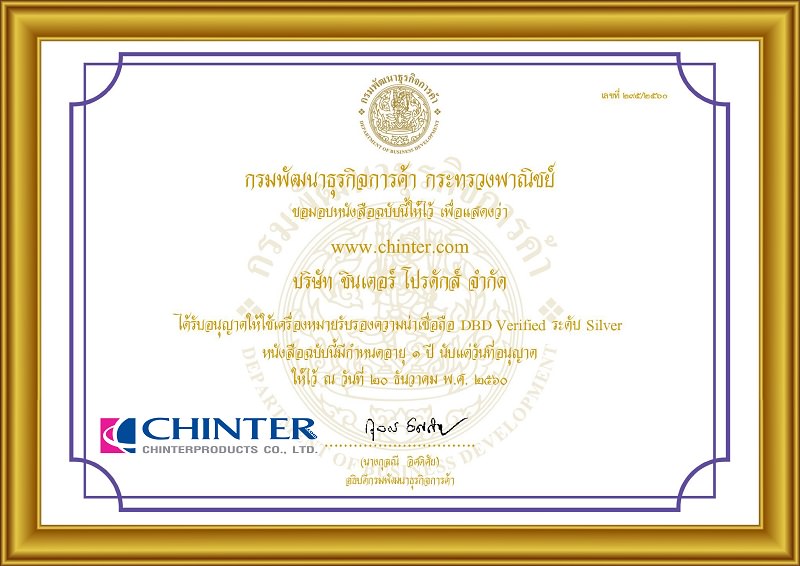 ได้รับเครื่องหมาย DBD Verified ระดับ Silver จาก กรมพัฒนาธุรกิจการค้า พร้อมกับจดทะเบียนพาณิชย์อิเล็กทรอนิกส์ เพื่อสร้างความมั่นใจให้ลูกค้าทุกระดับ ทั้งรายย่อยและองค์กร